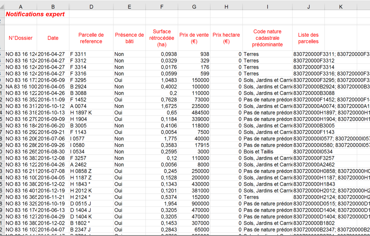 - Une base de données claire et fournie comportant l’exhaustivité des notifications à la SAFER PACA dans le cadre de son droit de préemption.